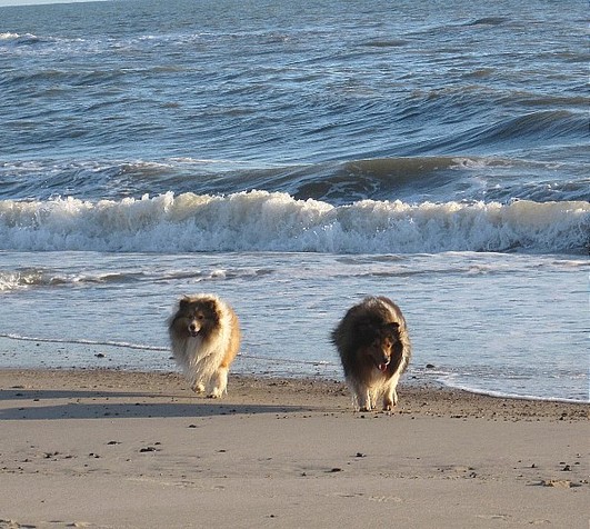In einem Urlaub an der Nordsee zeigte es sich dann, dass Sammy sehr stark an Schafen interessiert war und als kurz darauf in unserer Zeitung ein Hütekurs für Hütehunde angeboten wurde, meldete ich Sammy dazu an. Von der ersten Stunde an zeigt es sich, dass Sammy wirklich das Hüten noch im Blut hatte. Und es machte ihm wirklich einen Riesenspass! Sammy war damals schon 7 1/2 Jahre alt und mich hat es so gefreut, zu sehen, wie leidenschaftlich und mit wieviel Freude Sammy dort bei den Schafen mitgemacht hat.